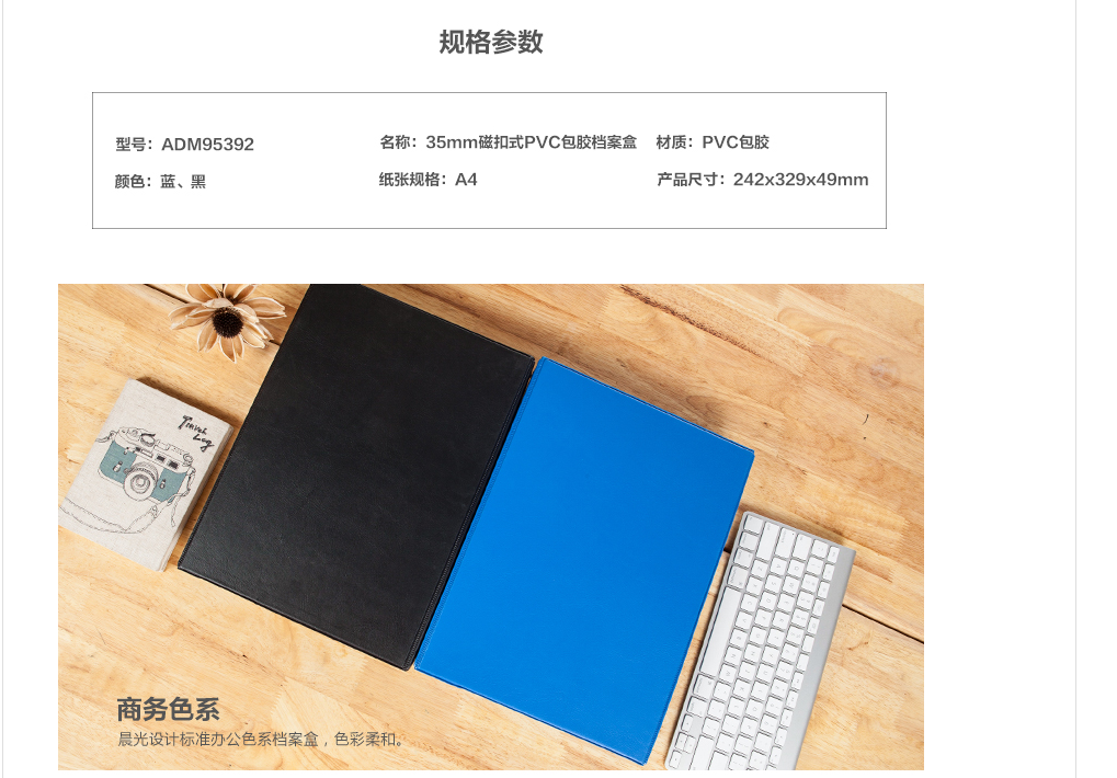 >晨光35mm磁扣式PVC包胶档案盒ADM95392