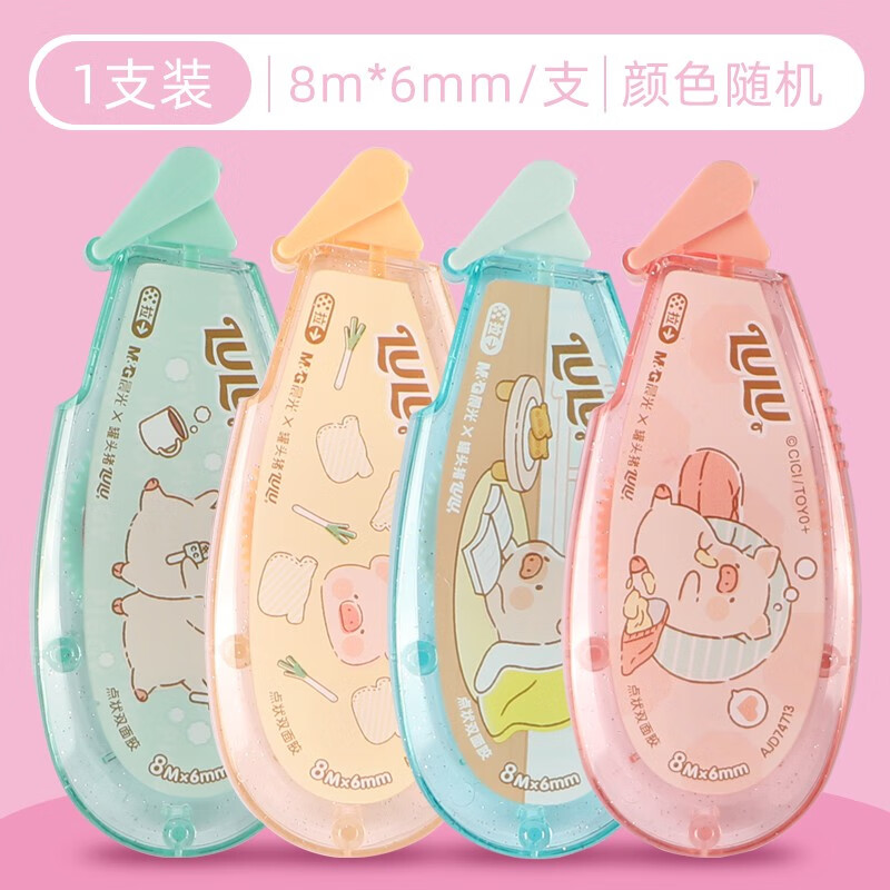 晨光/M&G AJD74713 办公消耗用品-文教用品-文具-胶棒/固体胶/胶水-LuLu猪系列点点胶粉红学生用手帐胶带可爱修正带式透明手账贴纸胶 1支装