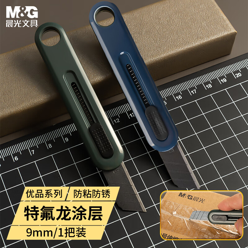 美工刀>晨光/M&G ASS913S2 办公消耗用品-文教用品-文具-美工刀-优品MINI特氟龙防粘美工刀裁纸刀 办公用品防锈美工刀单把装