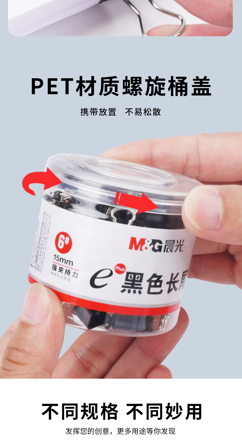 晨光/M&G ABS92737 办公消耗用品-文教用品-文具-长尾夹-6#15mm 60只/罐 黑色长尾夹 小号金属票据夹 Eplus系列办公燕尾夹 60只/罐