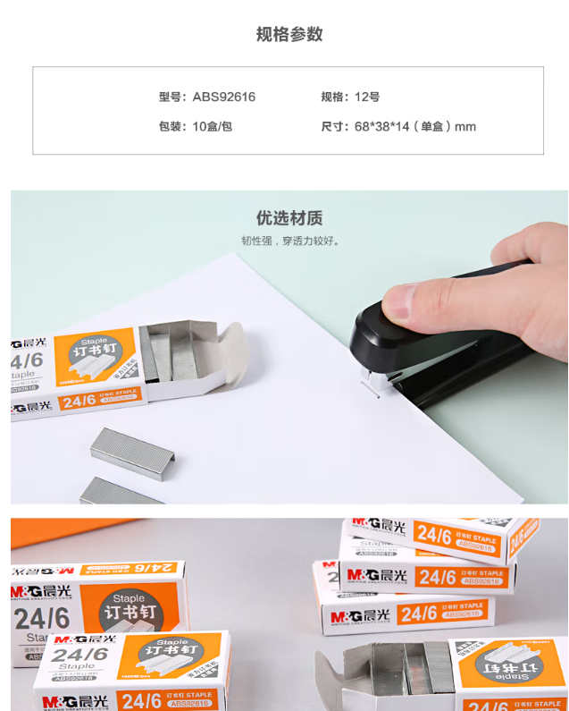 >晨光/M&GABS92616办公消耗用品-文教用品-文具-装订及打孔类-订书钉12号