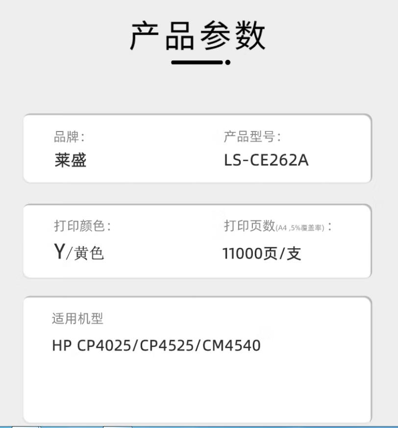 粉盒>莱盛 LS-CE262A 粉盒 彩色粉盒 黄色 适用于 惠普 HP CP4025/CP4525/CM4540