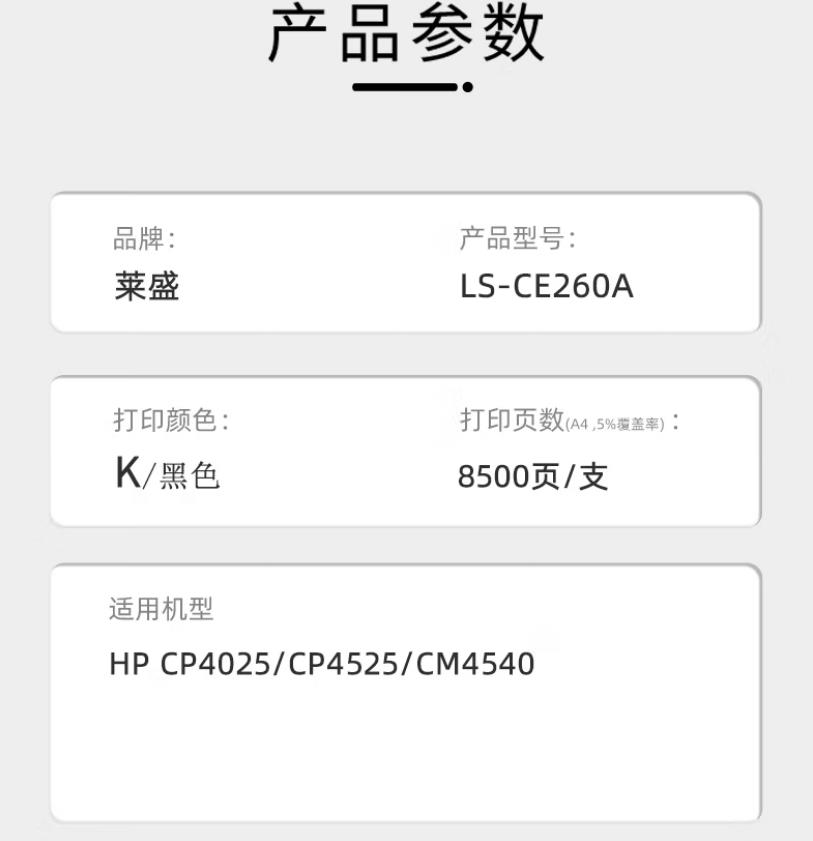 粉盒>莱盛 LS-CE260A 粉盒 黑色粉盒 适用HP CP4025/CP4525/CM4540