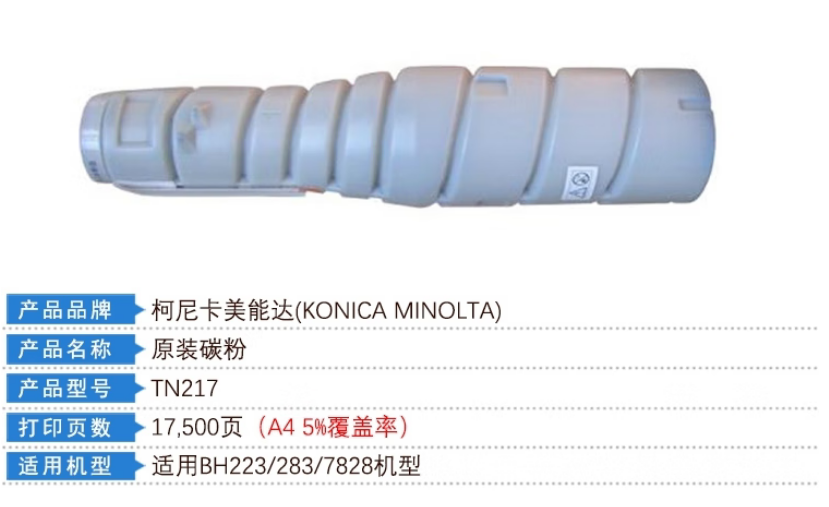 粉盒>柯尼卡美能达 TN217 粉盒 原装碳粉(适用BH223/283/7828)印量17500页