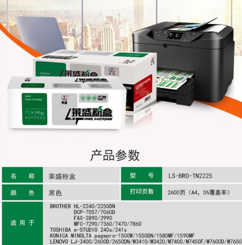 莱盛 LS-BRO-TN2225 粉盒 黑色粉盒 适用于BROTHER HL-2240/2250DN,DCP-7057/7060D,FAX-2890/2990