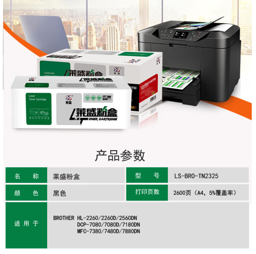 莱盛 LS-BRO-TN2325 粉盒 黑色粉盒 HL-2260/2560,DCP-7080/7180,MFC-7380/7480 2600页