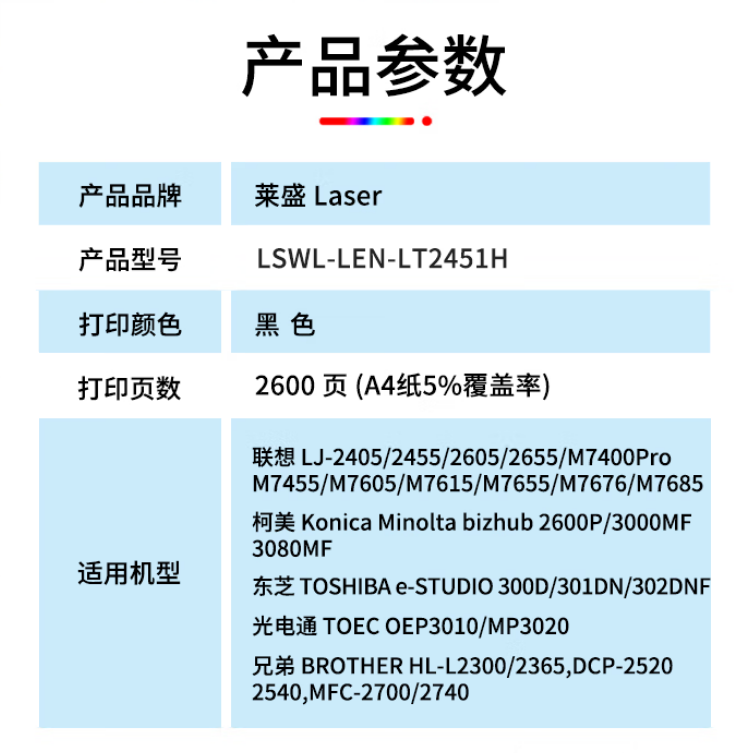 莱盛 LS-LEN-LT2451H 粉盒 联想LJ-2405 2455 2605 2655 M7400Pro 2600页