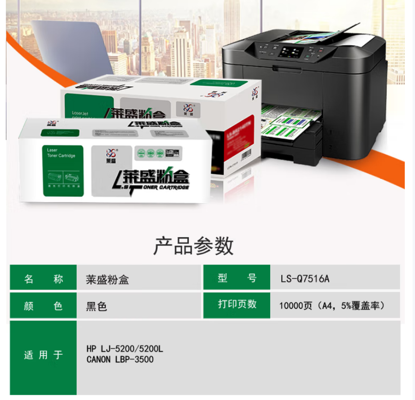 粉盒>莱盛 LS-Q7516A 粉盒 黑色粉盒 适用于 HP LJ-5200/5200L,CANON LBP-3