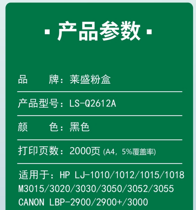 粉盒>莱盛 LS-Q2612A 粉盒 黑色粉盒 适用于HPLJ-1010/1012/1015/1018/1020/1