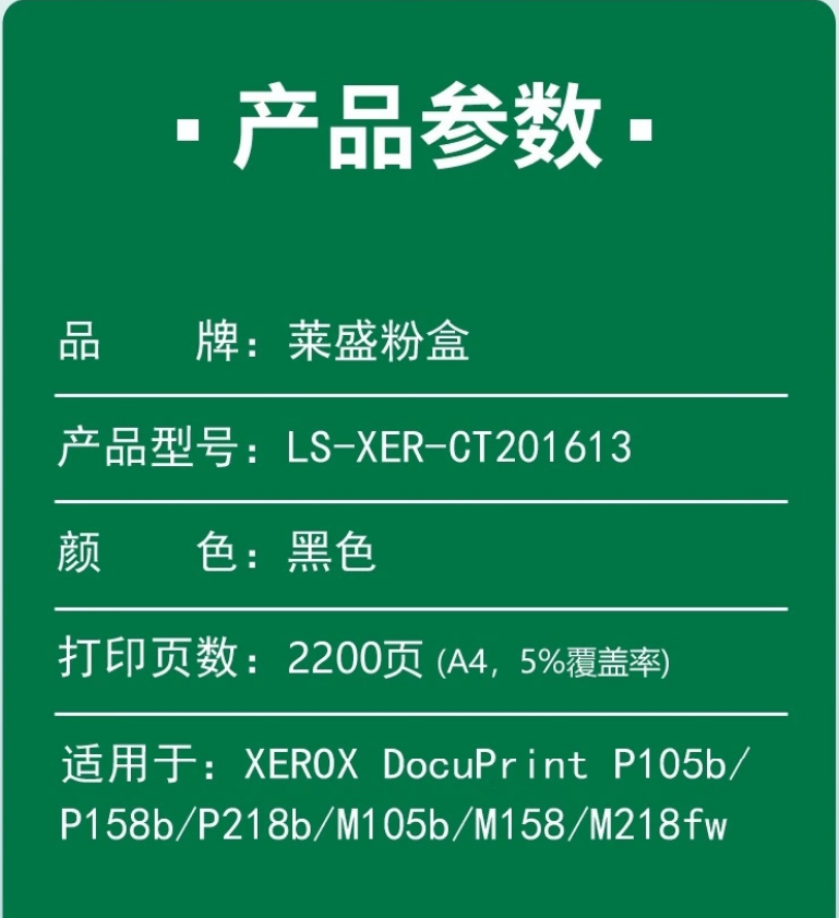 粉盒>莱盛 LS-XER-CT201613 粉盒 黑色粉盒 适用于施乐XEROX DocuPrint P105