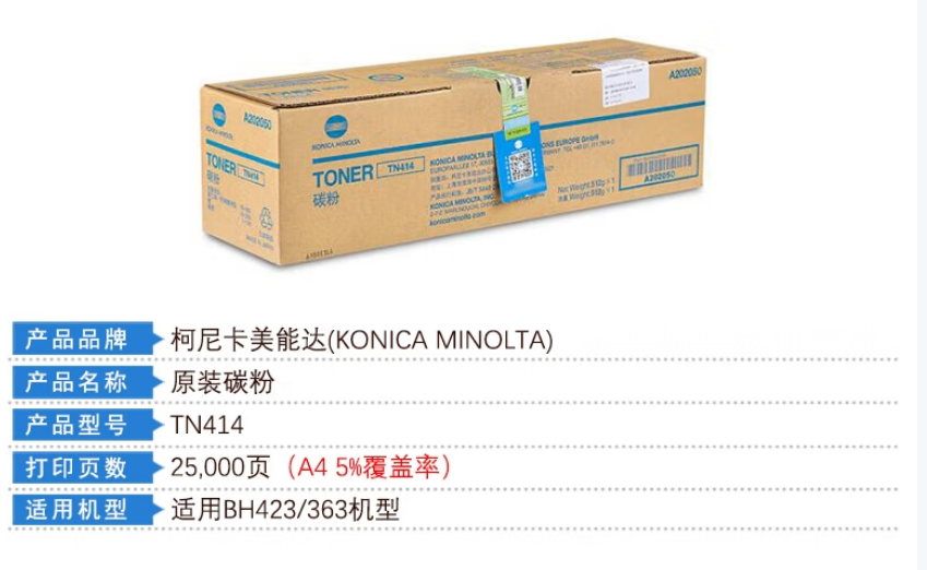 >柯尼卡美能达 TN414 粉盒 黑色粉盒 适用363/423机型