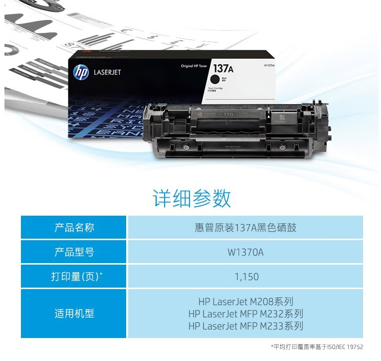 惠普 W1370A 粉盒 黑色粉盒 适用于(M208、M232dwc、M233sdn) W1370A(1150页)