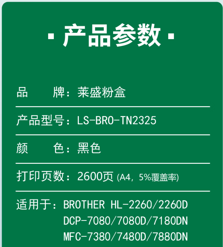 粉盒>莱盛 LS-BRO-TN2325 粉盒 黑色粉盒 适用兄弟Brother HL-2260 LS-BRO-TN2325