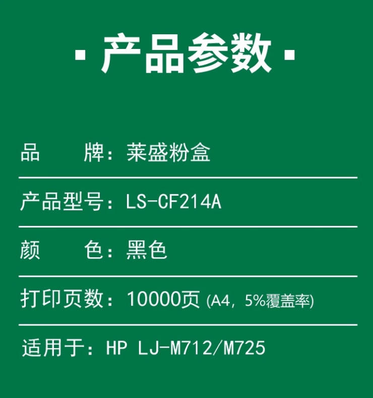>莱盛 LS-CF214A 粉盒 黑色粉盒 适用于HP LJ-M712/M725