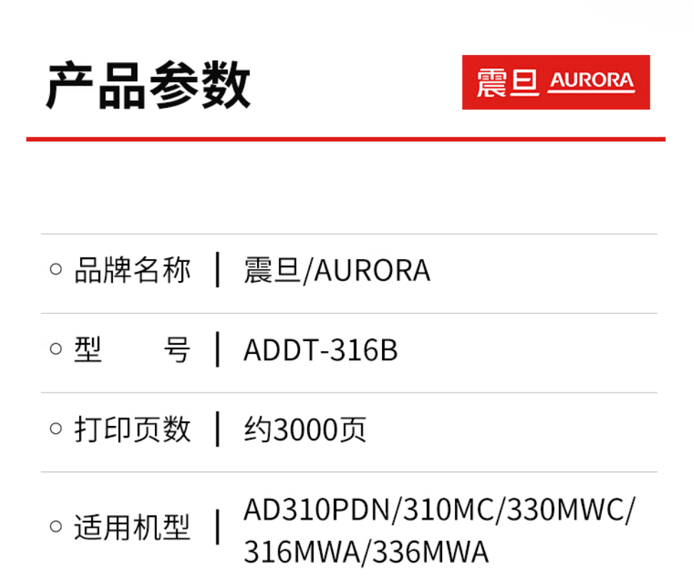 粉盒>震旦 ADDT-316B 粉盒 黑色粉盒 (适用AD310PDN/MC/AD316MWA/336MWA/AD330MWC系列机型)约3000页