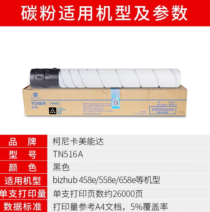 >柯尼卡没能达 TN516A 粉盒 黑色粉盒 适用于458e/558e/658e