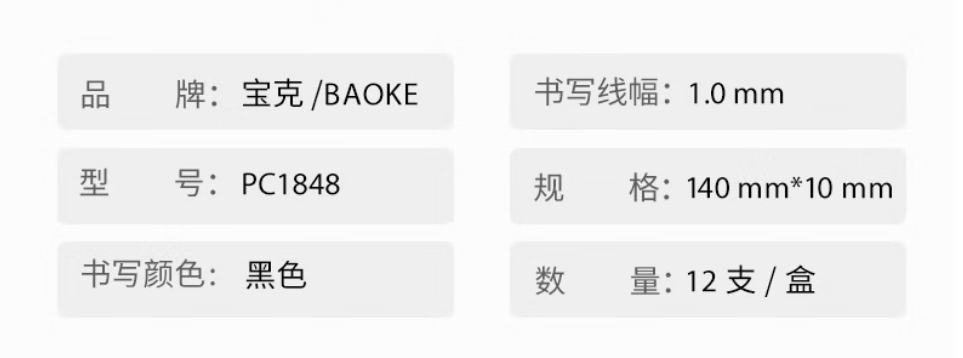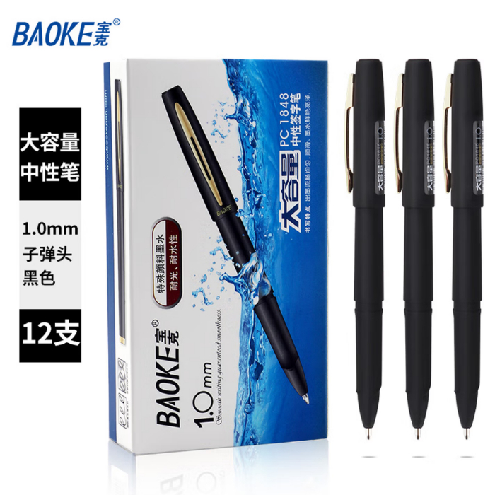 >宝克 PC1848 书写用笔类用具 1.0mm大容量黑色中性笔 12支/盒