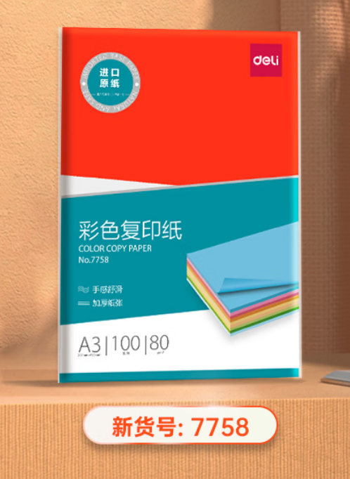 >得力(deli)7758 复印纸 A3 80g深红大红色复印纸 100张