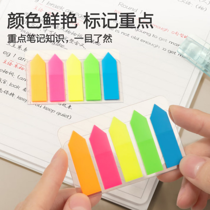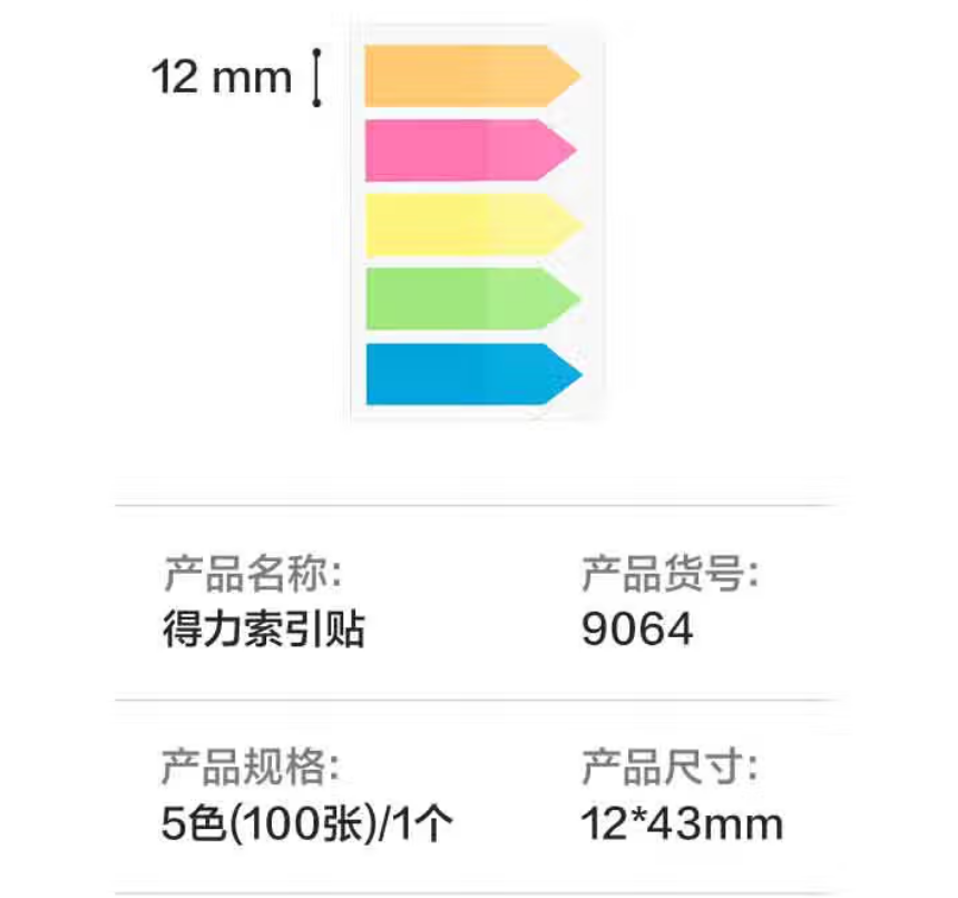 记事贴>得力(deli)9064 标签打印纸/条码纸 100张5色荧光膜指示标签贴 43*12mm